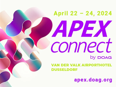 | | APEX connect 2024: Call for Papers gestartet | Der CfP für die Jubilläumsausgabe der beliebten Oracle-APEX-Fachkonferenz hat begonnen. Die 10. APEX connect präsentiert sich für drei Tage mit neuem Konzept in Düsseldorf. Vorträge können bis zum 27. November 2023 eingereicht werden.
