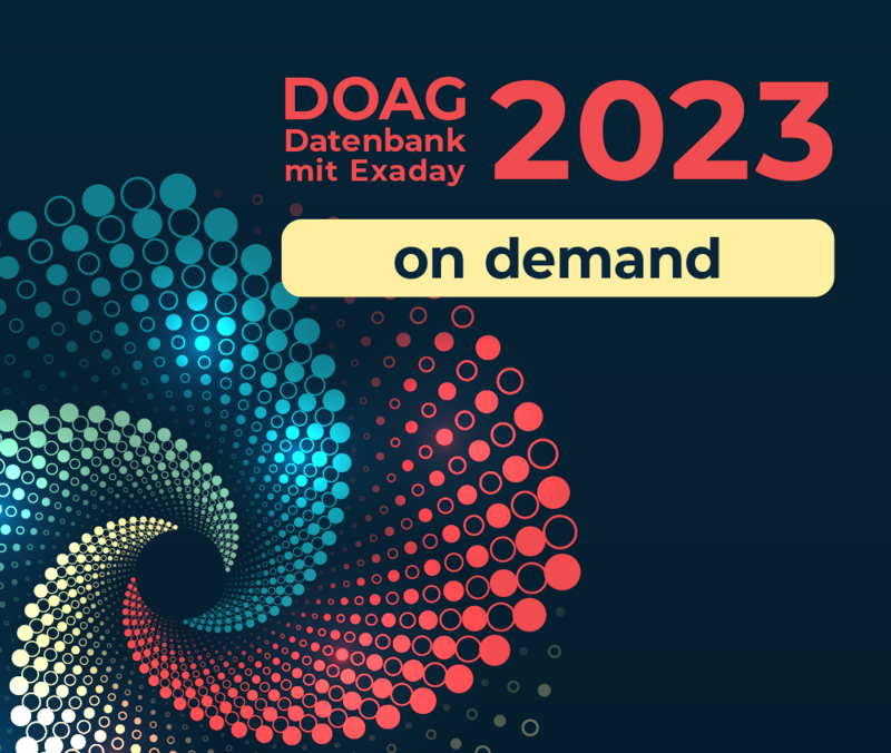 Mindestens ein Jahr lang erhältst Du Zugriff auf die Vortragsaufzeichnungen der DOAG 2023 Datenbank. Es werden alle Vorträge aufgezeichnet und bereits kurz nach der Veranstaltung online zur Verfügung gestellt.